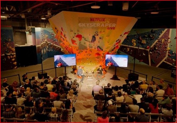 On Sunday, April 19, Netflix hosted an exclusive event with free solo climber Alex Honnold to discuss his live-streamed ascent of one of the world's tallest skyscrapers in Taipei, Taiwan on SKYSCRAPER LIVE. The event, which included a climbing demo by Honnold, took place at Sender One climbing gym in Los Angeles, CA.